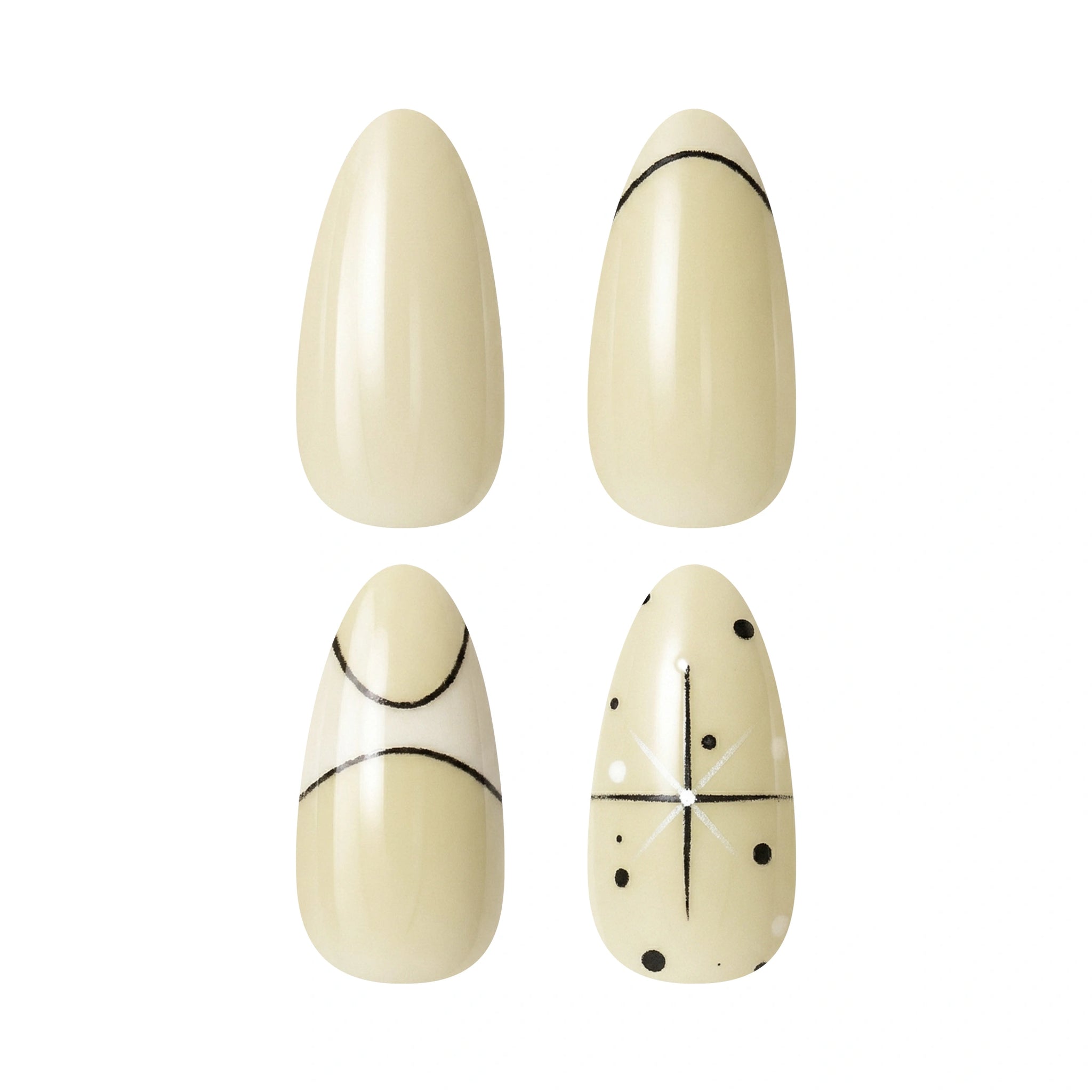 Nano® Buttercream Glow Pressed on Nails - 24pcs with Glue | Yellow Minimal Line Art Fake Nails Set