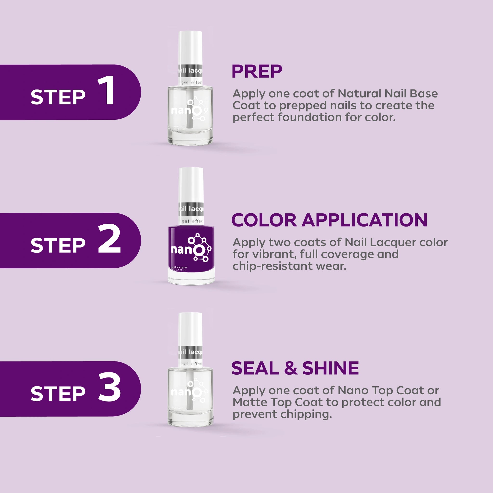 2. ضعي طبقة من Nano® Normal Base Coat لحماية أظافرك الطبيعية وضمان التصاق أفضل.