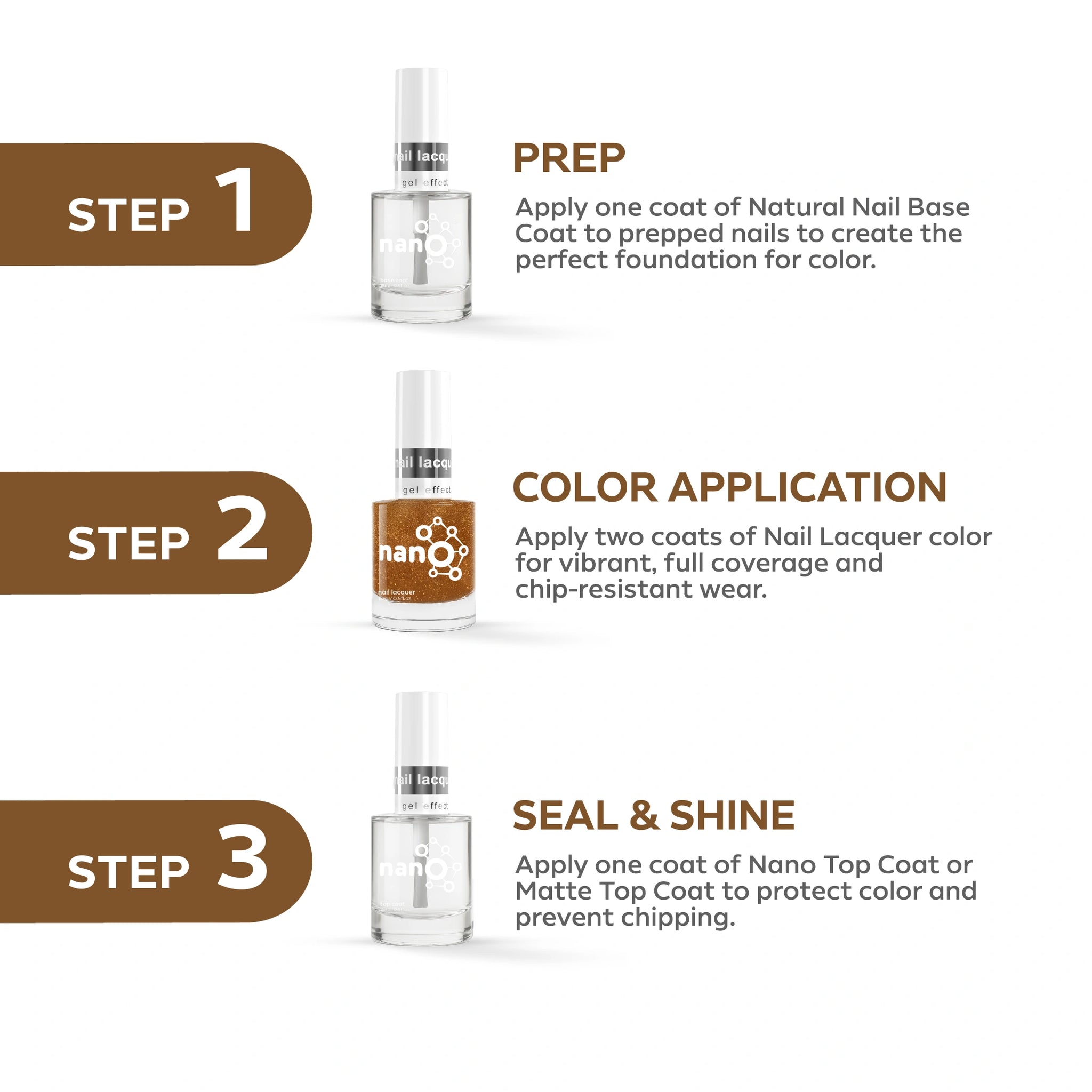 - ضعي طبقة من Nano® Normal Base Coat لحماية أظافرك الطبيعية وضمان التصاق أفضل.