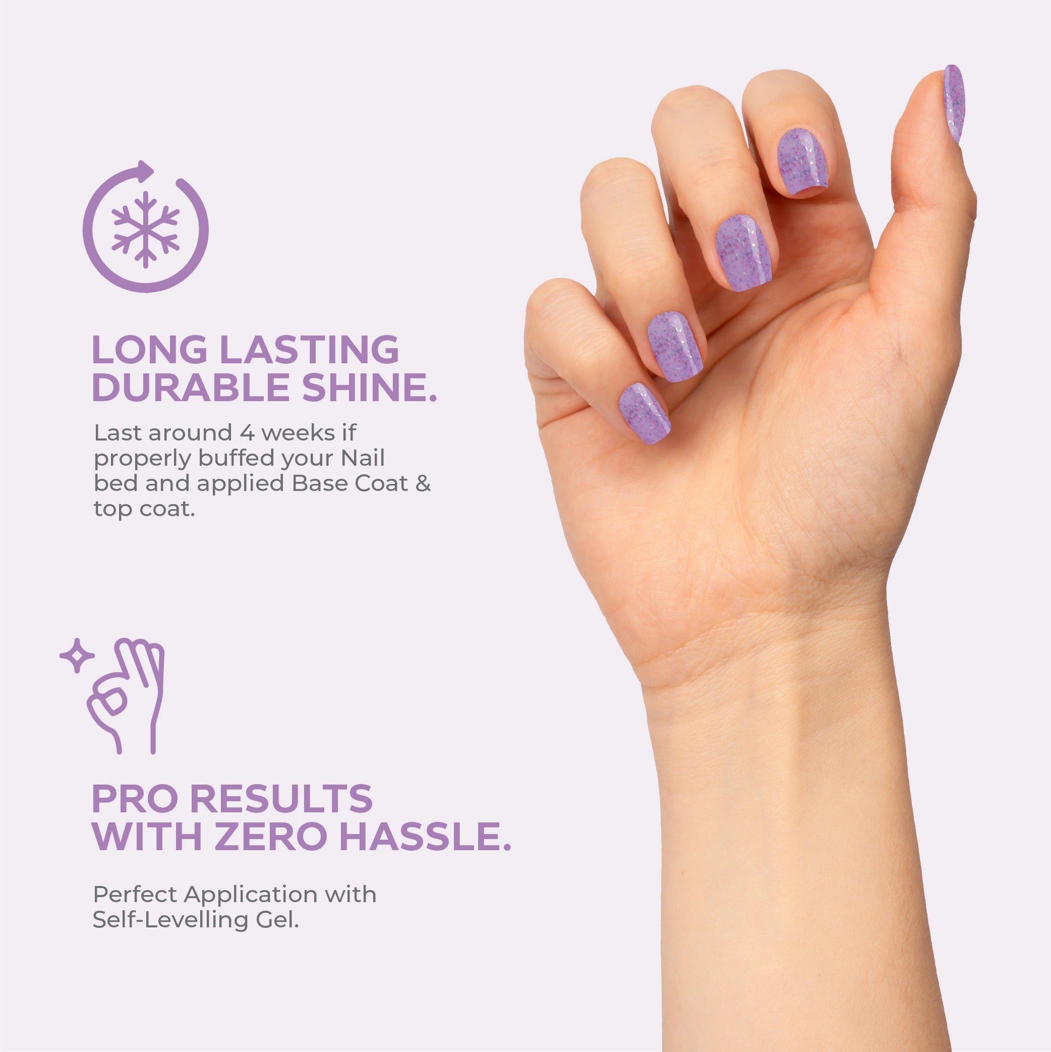 - ذاتي التسوية، سهل التطبيق لتغطية الأظافر بالكامل.