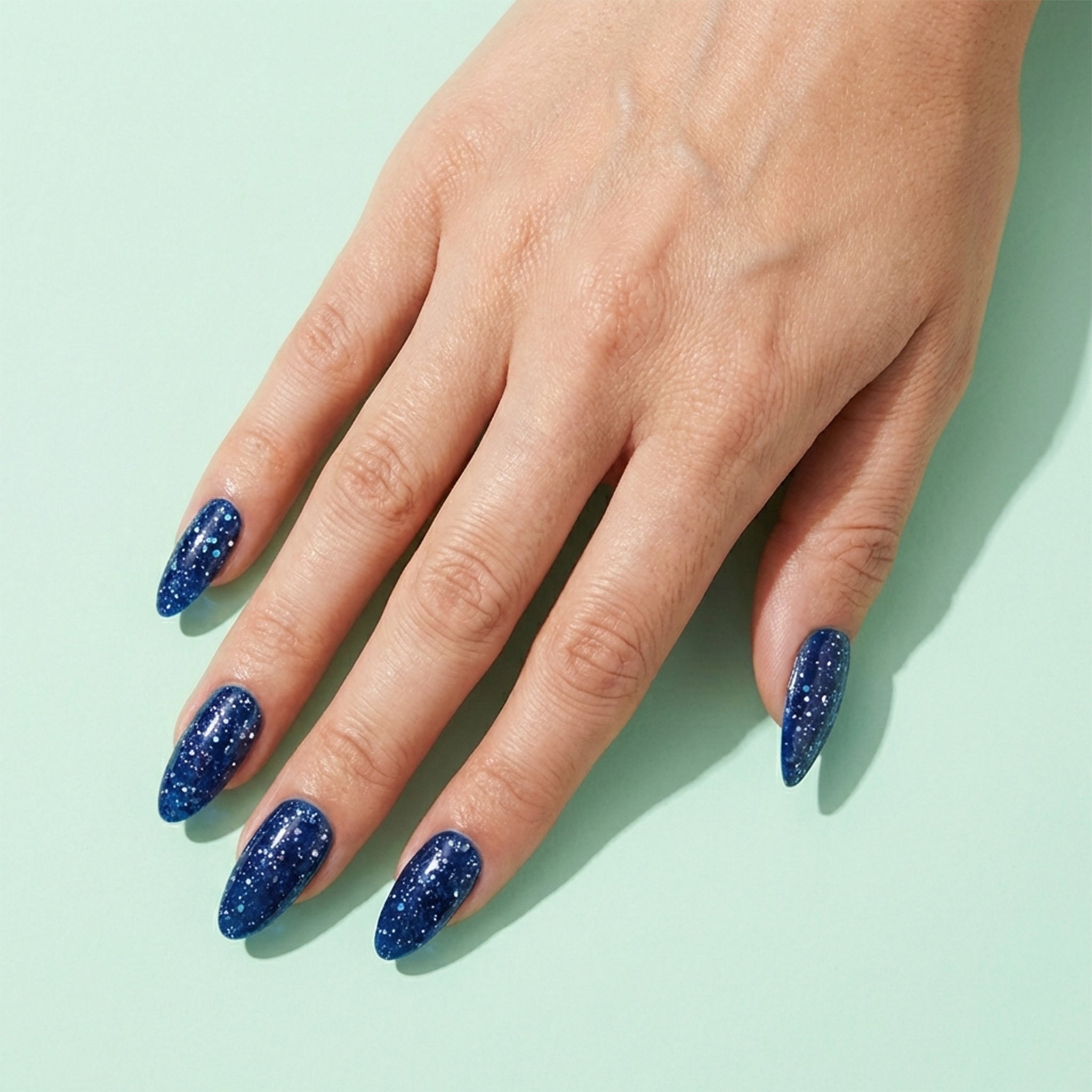 يتميز مسحوق الغمس Sparkling Navy بقوام حريري يعزز لونه البحري الكلاسيكي مع لمعان خفيف، وهو مثالي للحصول على مانيكير أنيق وجاهز للمساء.