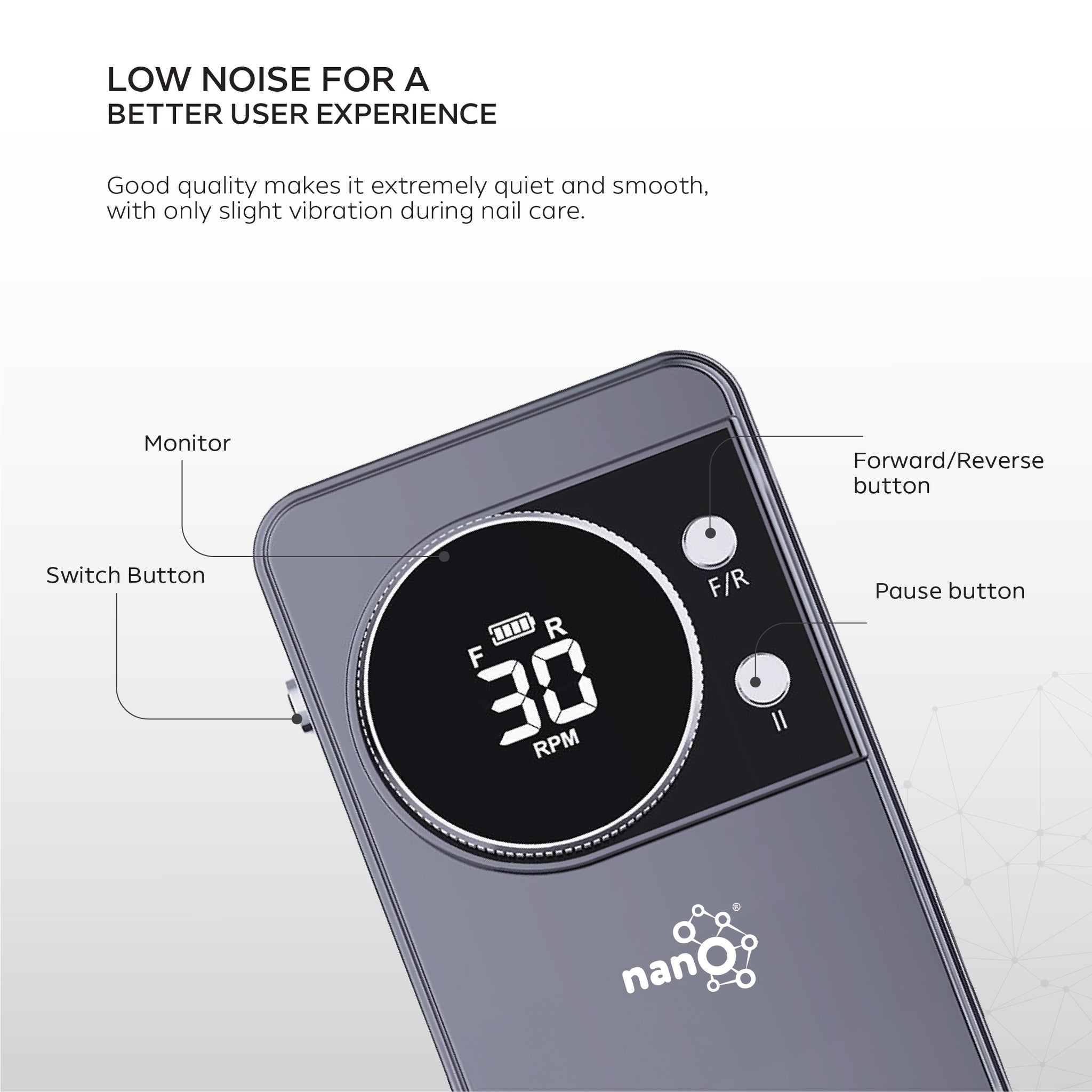 - Powerful 35,000 RPM motor for professional nail services