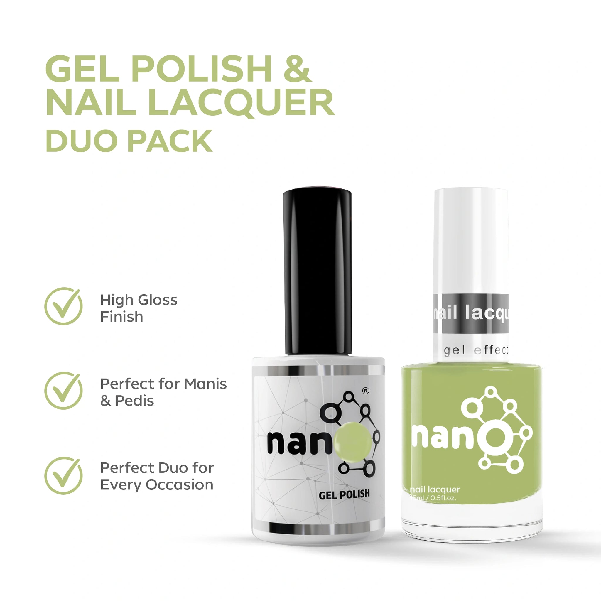 P2617 – Meadow Green Duo Pack – TPO & HEMA Free Gel Polish & Nail Lacquer (15ml each) | Long-Lasting, High-Gloss Nail Polish Set