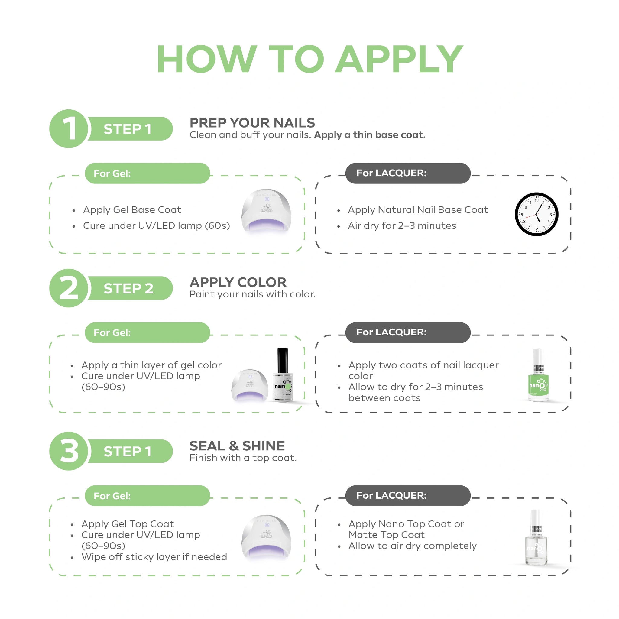 - Compatible with all base and top coats for customized durability and shine.
