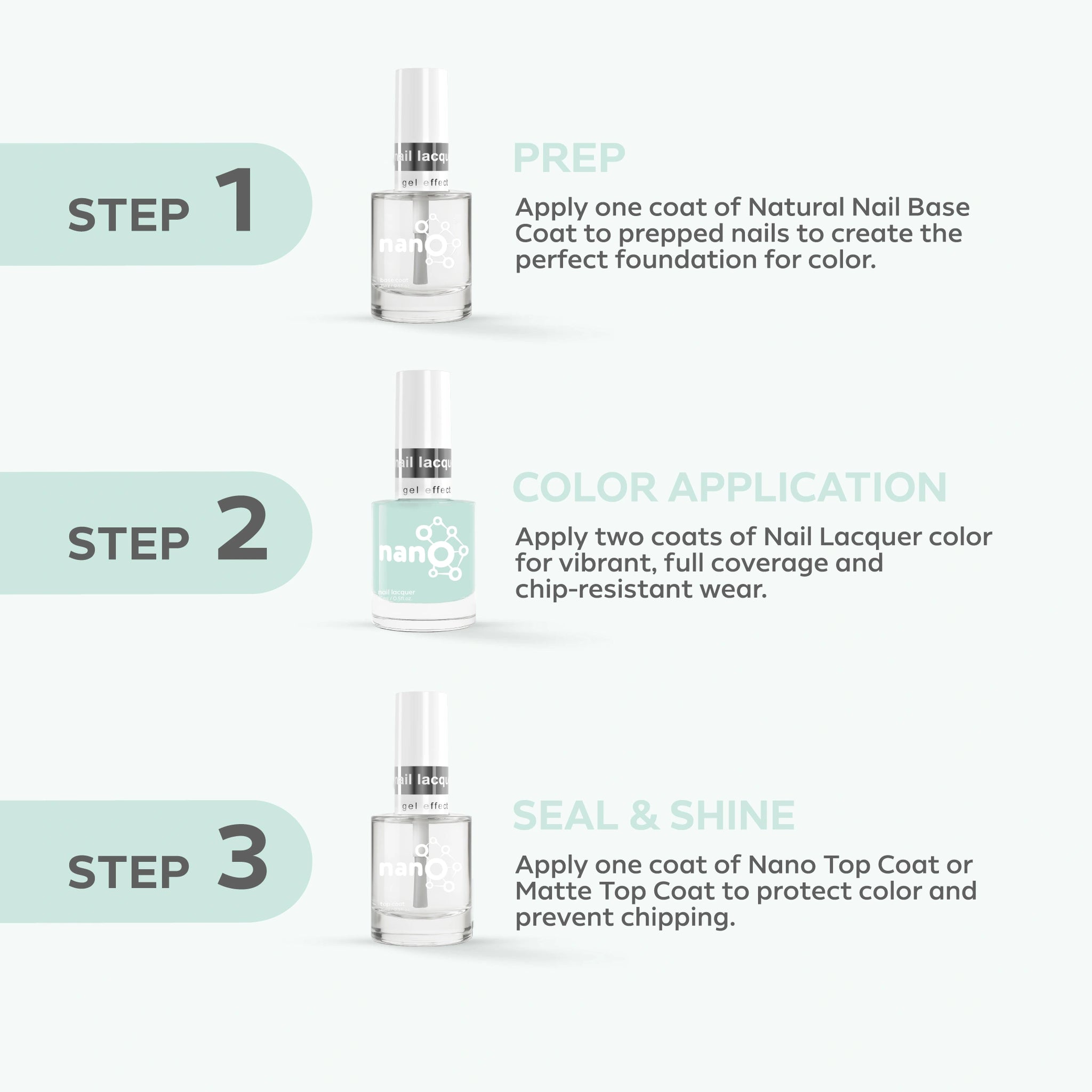 5. قم بإنهاء العمل عن طريق تطبيق Nano® Normal Top Coat للحصول على لمسة نهائية لامعة تدوم طويلاً.