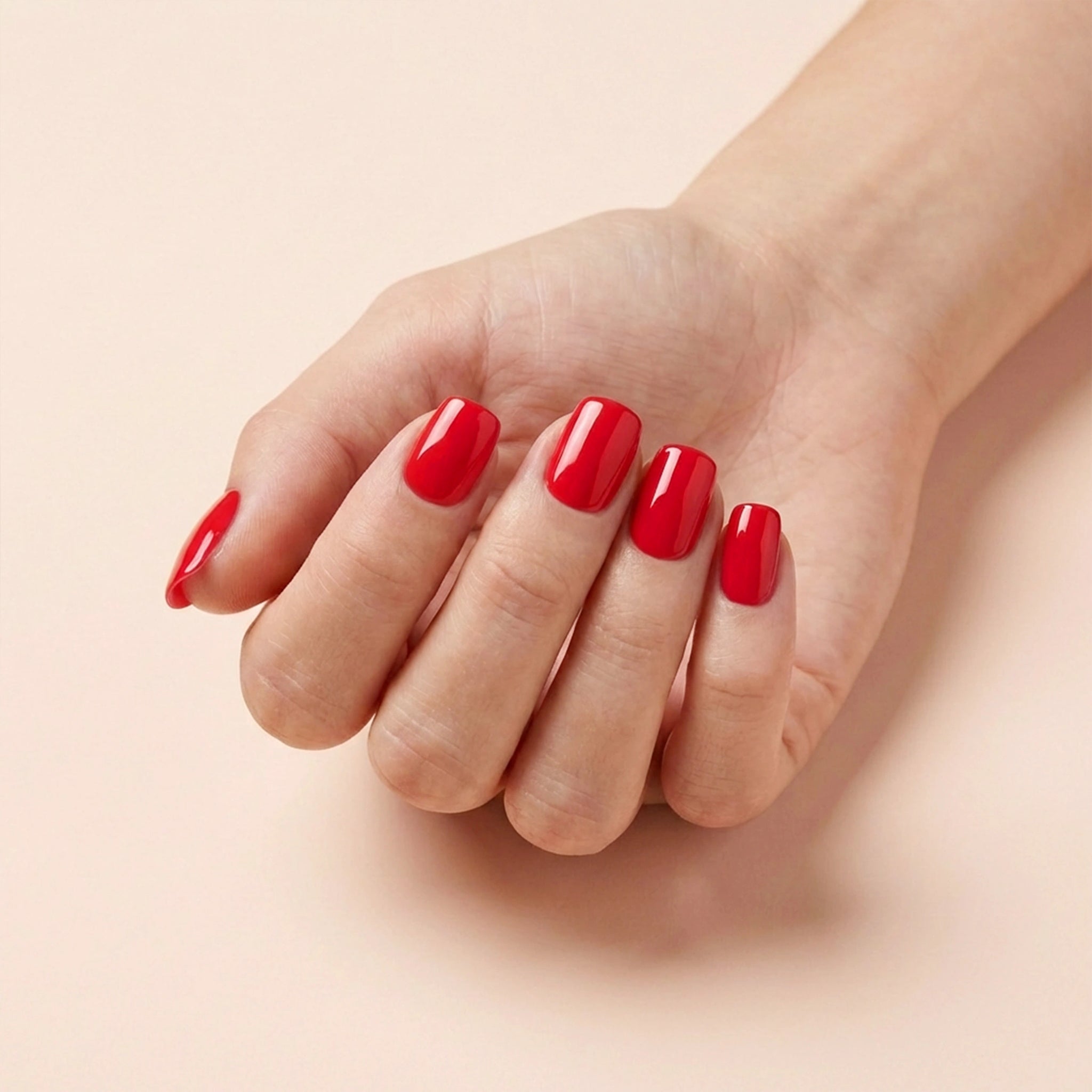 Nano® Red Velvet Glow Pressed on Nails - 24pcs with Glue | Instant Gel-Like Shine, Classic Red Glossy Fake Nails Set