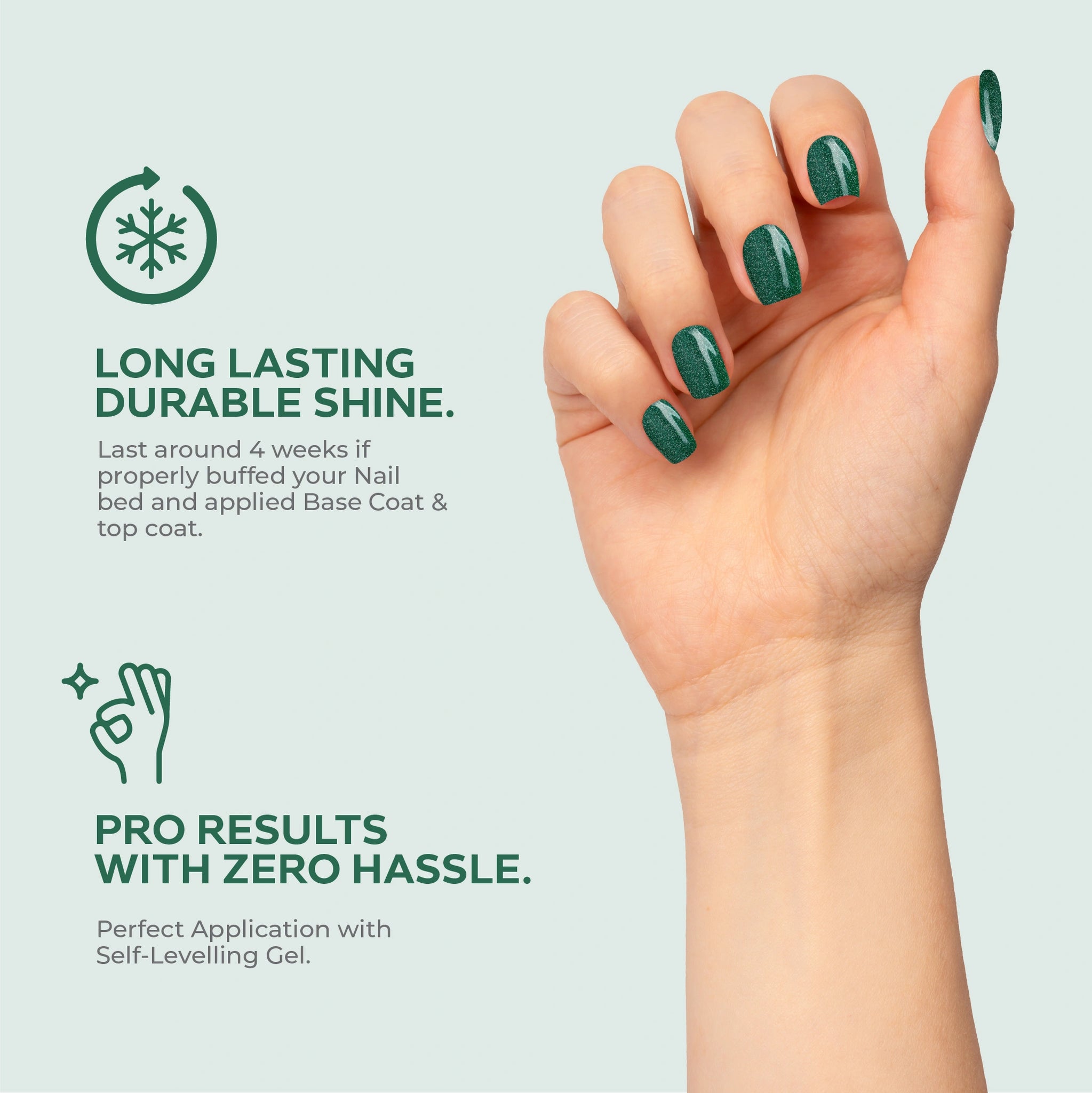 - Self-Leveling, Easy-Apply for Complete Nail Coverage.