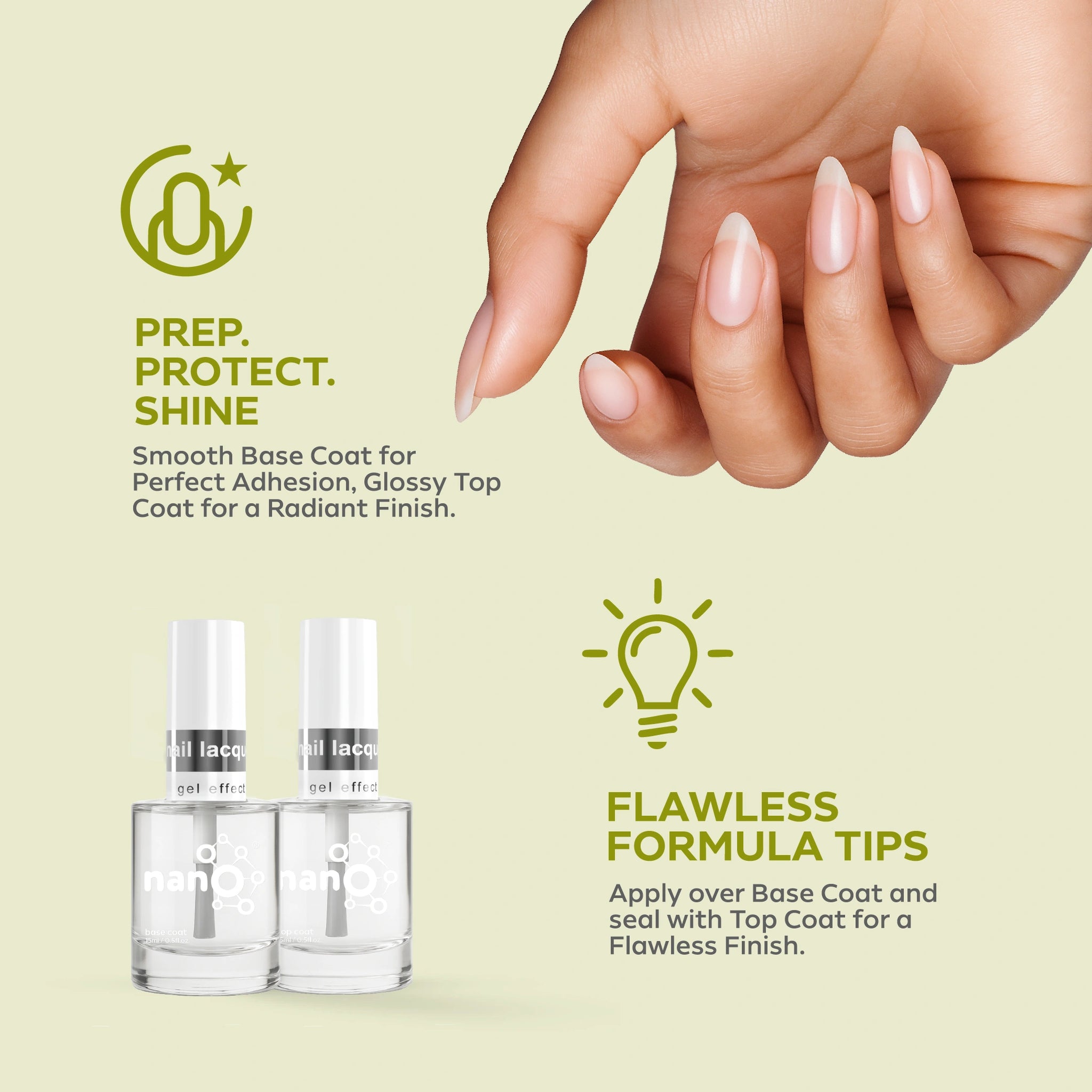 2. Apply a layer of Nano® Normal Base Coat to protect your natural nails and ensure better adhesion.