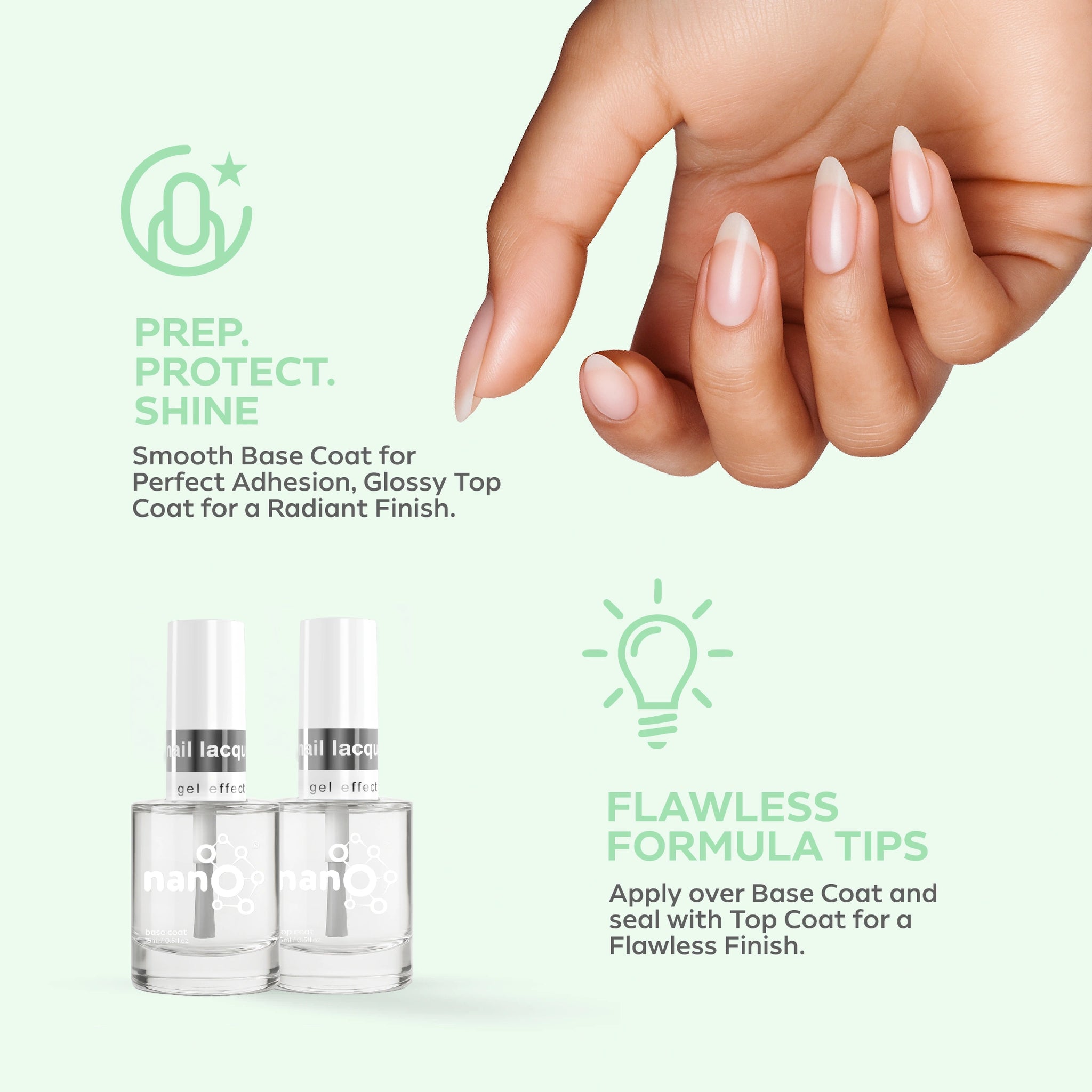 - Apply a layer of Nano® Normal Base Coat to protect your natural nails and ensure better adhesion.
