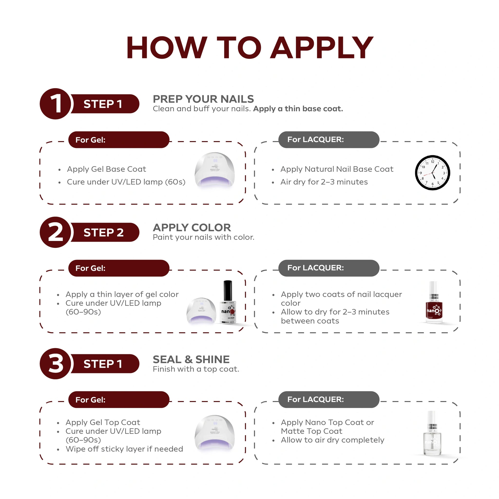 - Compatible with all base and top coats for customized durability and shine.
