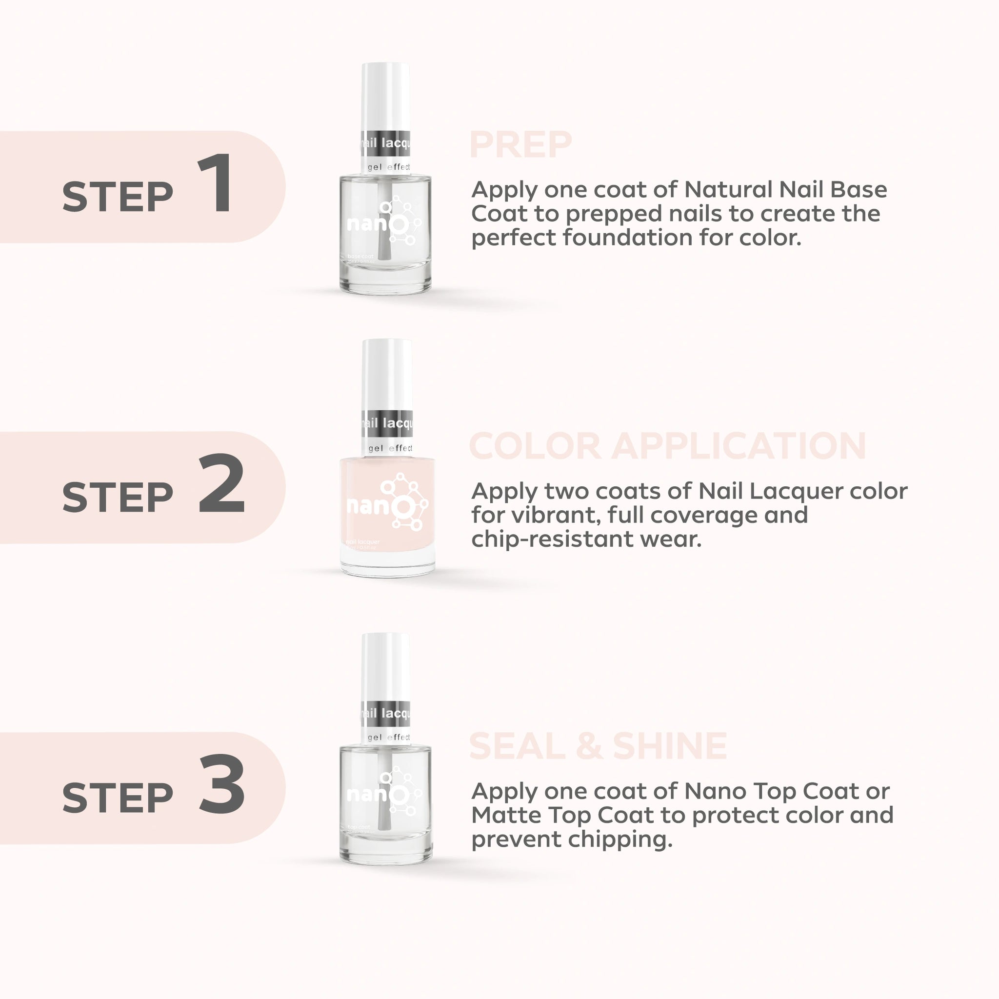 - Apply a layer of Nano® Normal Base Coat to protect your natural nails and ensure better adhesion.