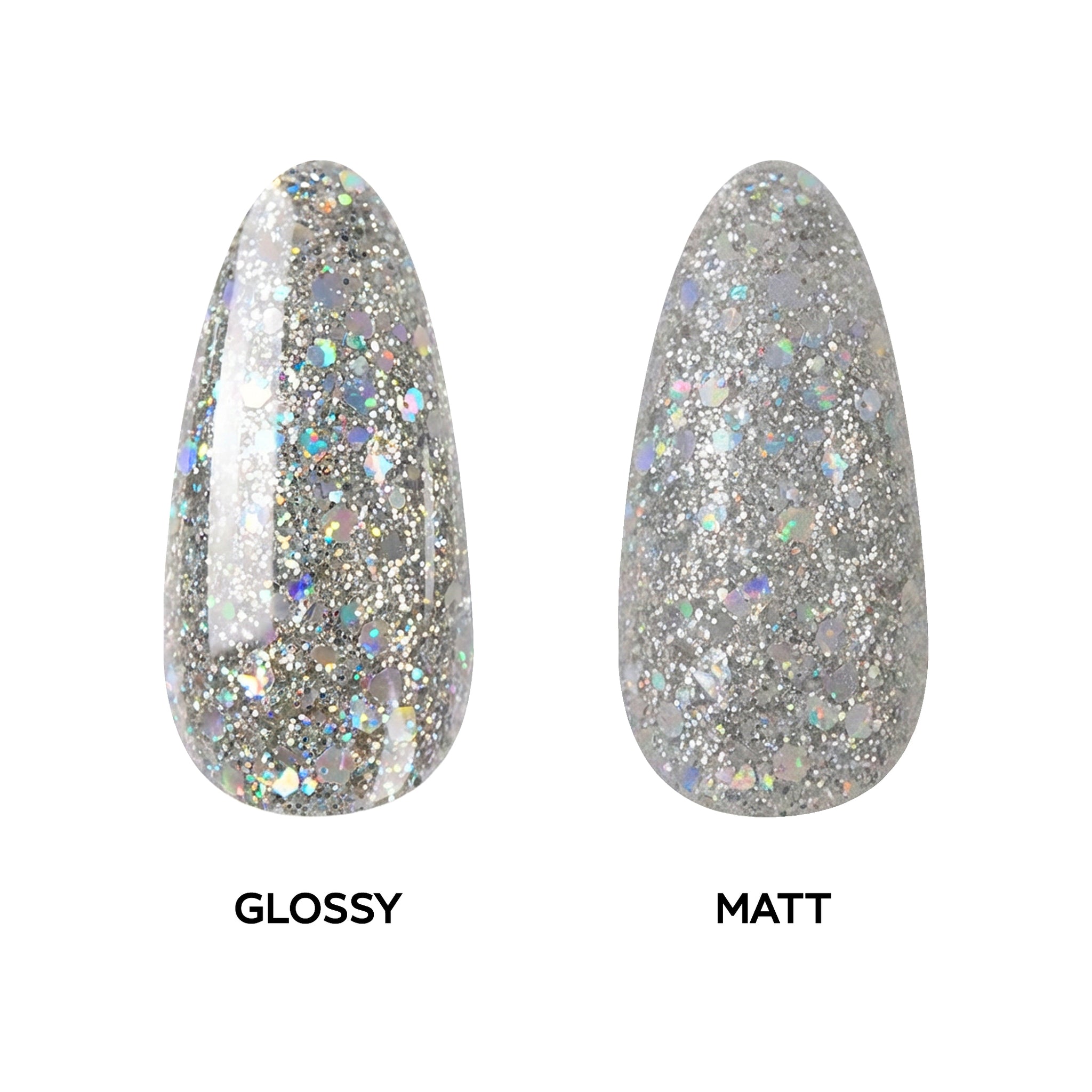 This Platinum Pizzazz Silver Glitter Gel Polish delivers rich, highly pigmented color with a smooth, self-leveling texture for consistent, streak-free coverage. Designed for professional use, the formula cures quickly under UV/LED lamps and maintains a high-gloss finish without shrinkage or yellowing. The TPO-free and HEMA-free formulation supports modern salon standards while providing reliable wear and easy soak-off removal.