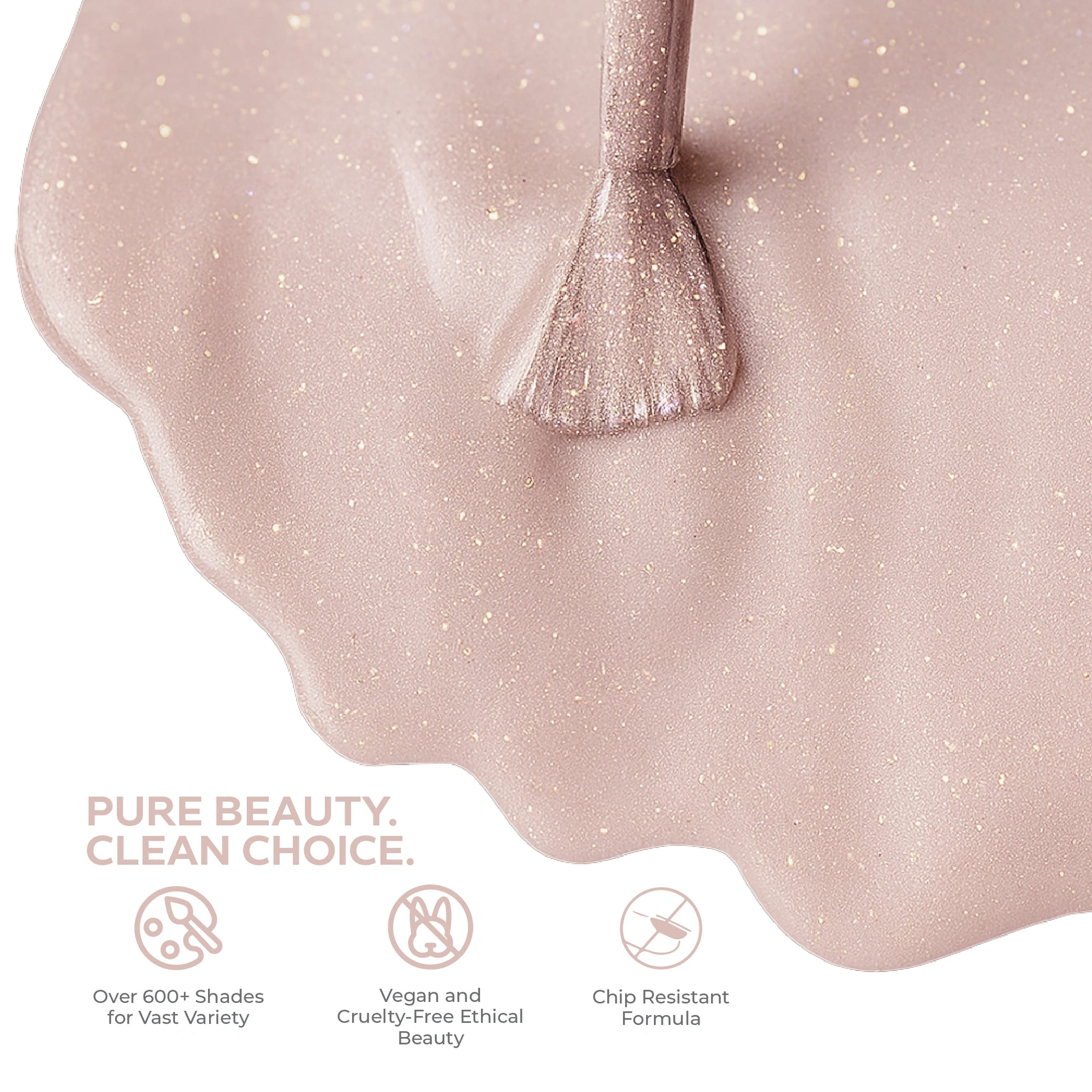 This Nude Pink Glitter Gel Polish delivers rich, highly pigmented color with a smooth, self-leveling texture for consistent, streak-free coverage. Designed for professional use, the formula cures quickly under UV/LED lamps and maintains a high-gloss finish without shrinkage or yellowing. The TPO-free and HEMA-free formulation supports modern salon standards while providing reliable wear and easy soak-off removal.