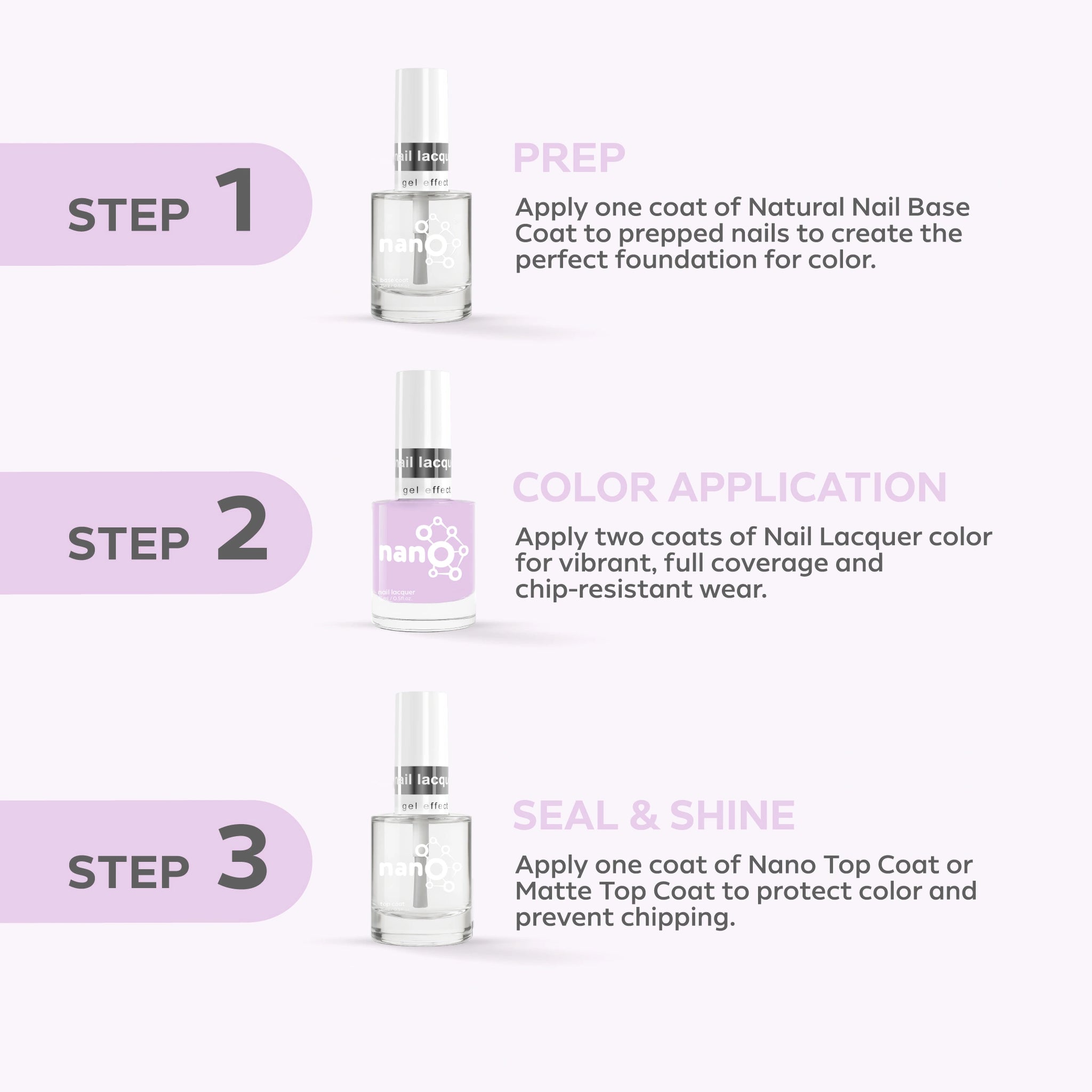 - Apply a layer of Nano® Normal Base Coat to protect your natural nails and ensure better adhesion.