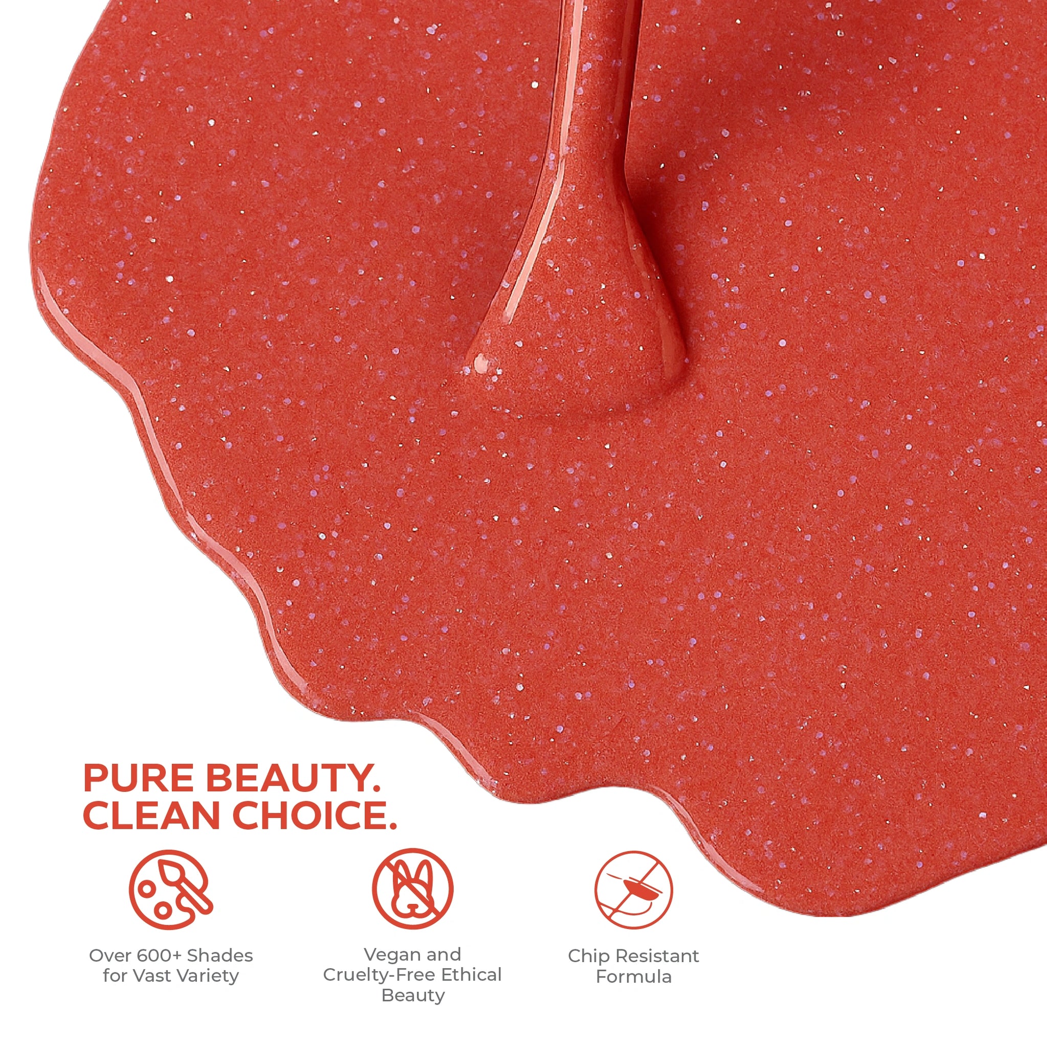 N3050 – Sunset Orange Gel Polish – 15ml | Long-Lasting, High Gloss Bright Orange Glitter Nail Polish Gel